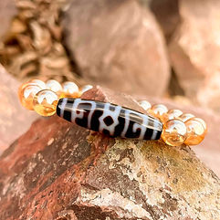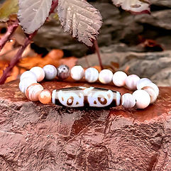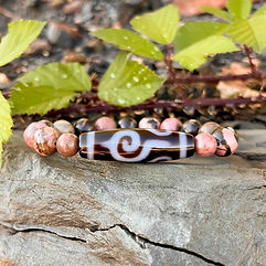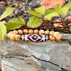 "Vajra" stellt einen heiligen Zepter dar, der in buddhistischen Lehren verwendet wird, um Erleuchtung und Stärke zu erfahren. Die Vajra Dzi Perle ist die Personifizierung der Vajra, das Instrument der himmlischen Gottheit Indra, der dieses heilige Zepter verwendete, um Feinde abzuwehren und negative Energie umzuwandeln.