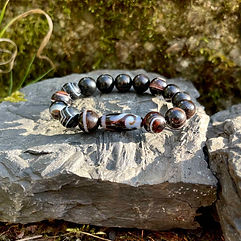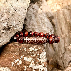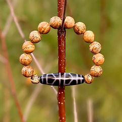 Der Tiger ist in der chinesischen Mythologie als Tier mit besonderer Stärke bekannt. Leidenschaftlich, energetisch, kämpferisch und überaus mutig sind die wohl aussagekräftigsten Attribute des Tigers. Die Dzi Perle "Tigerzahn" soll seinen Träger zu selbiger Stärke und Kampfgeist befähigen.